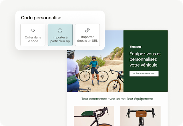 Concevez, optimisez et téléchargez votre e-mail créé avec Canva au format HTML, importez-le dans Mailchimp et préparez votre campagne pour l’envoi.